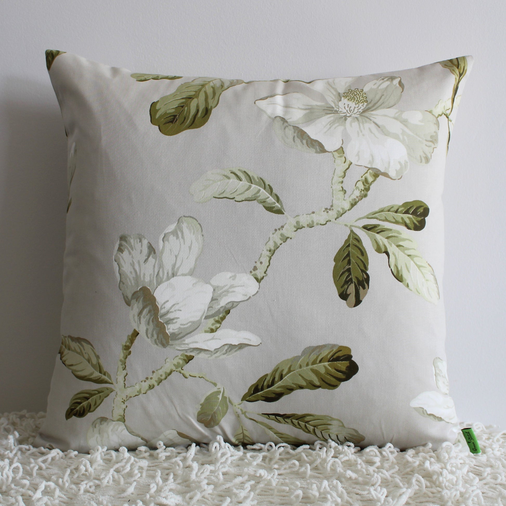 Bring the beauty of nature indoors with the Amelia Bloom Cushion. Showcasing elegant magnolia-style blossoms and soft green foliage on a neutral base, this design captures the freshness of a spring garden while remaining timeless and versatile.