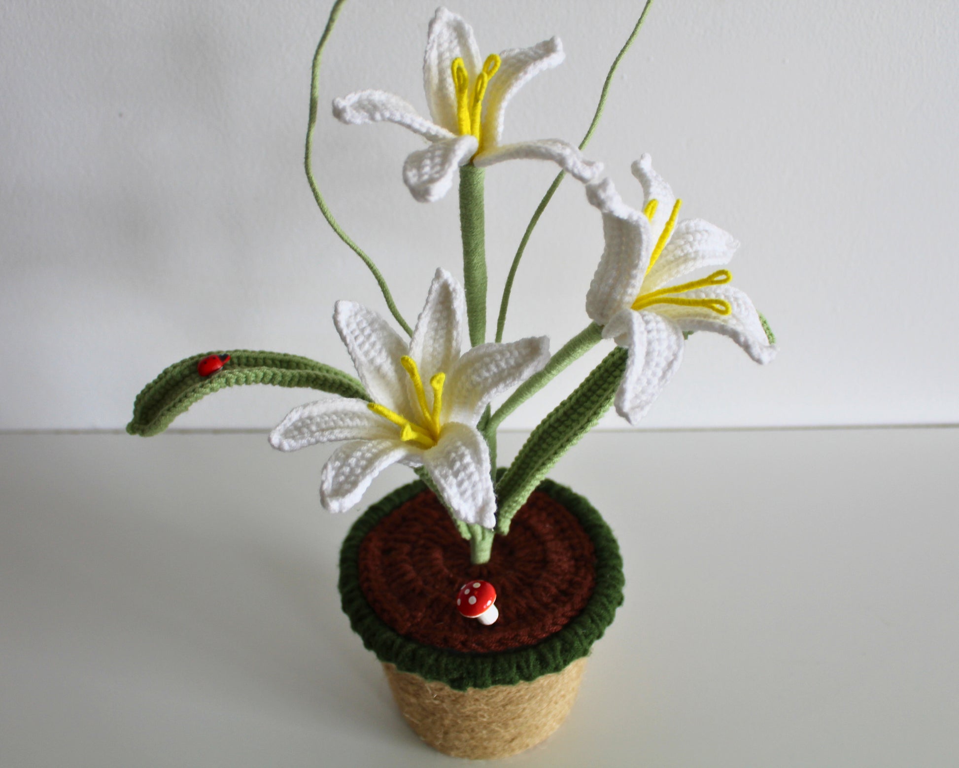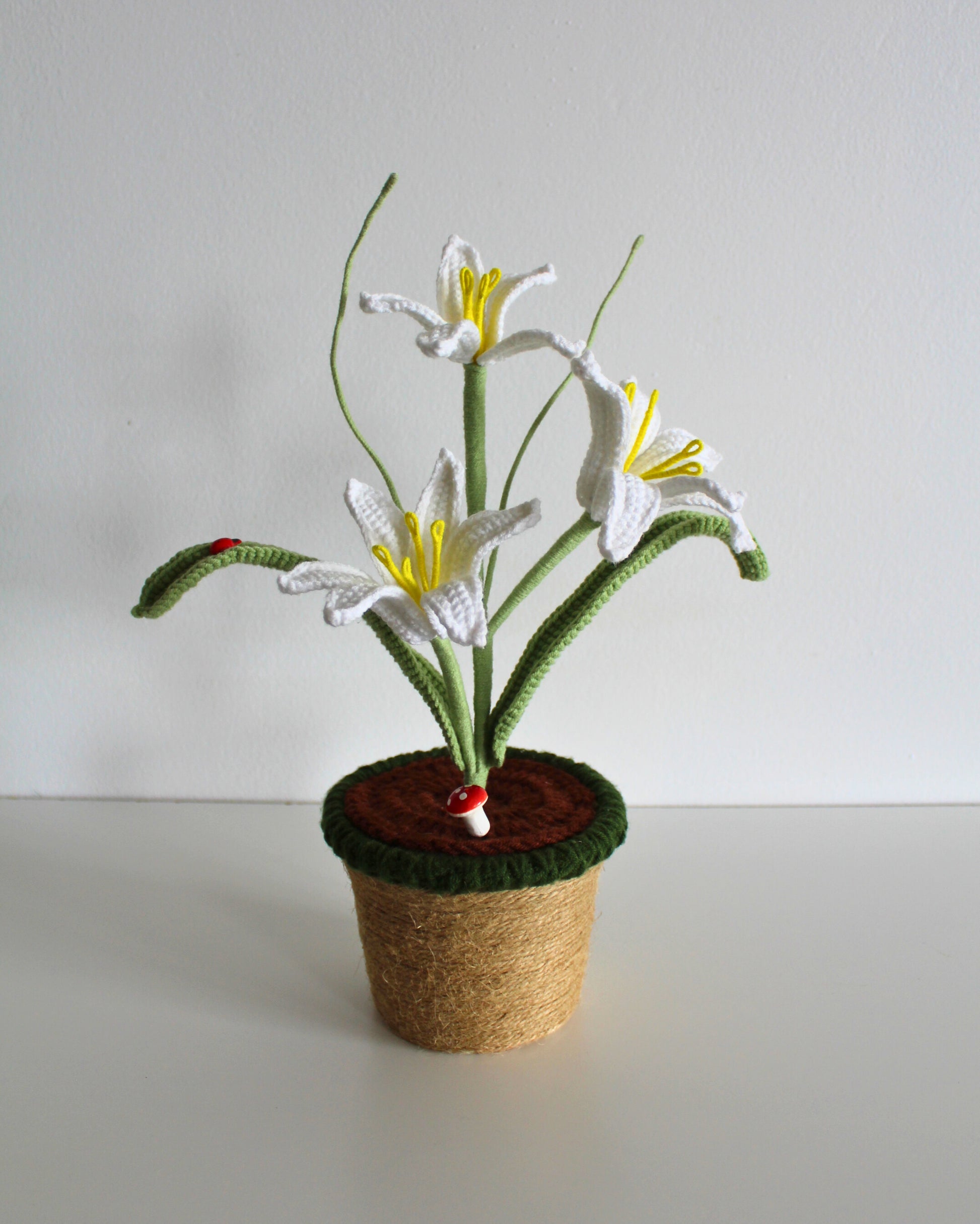Pure, graceful, and timeless, the Eternal White Lily is a handmade crochet bloom inspired by the classic beauty of white lilies. Featuring soft white petals with gentle curves and delicate detailing, this forever flower brings a sense of calm, elegance, and simplicity to any space.