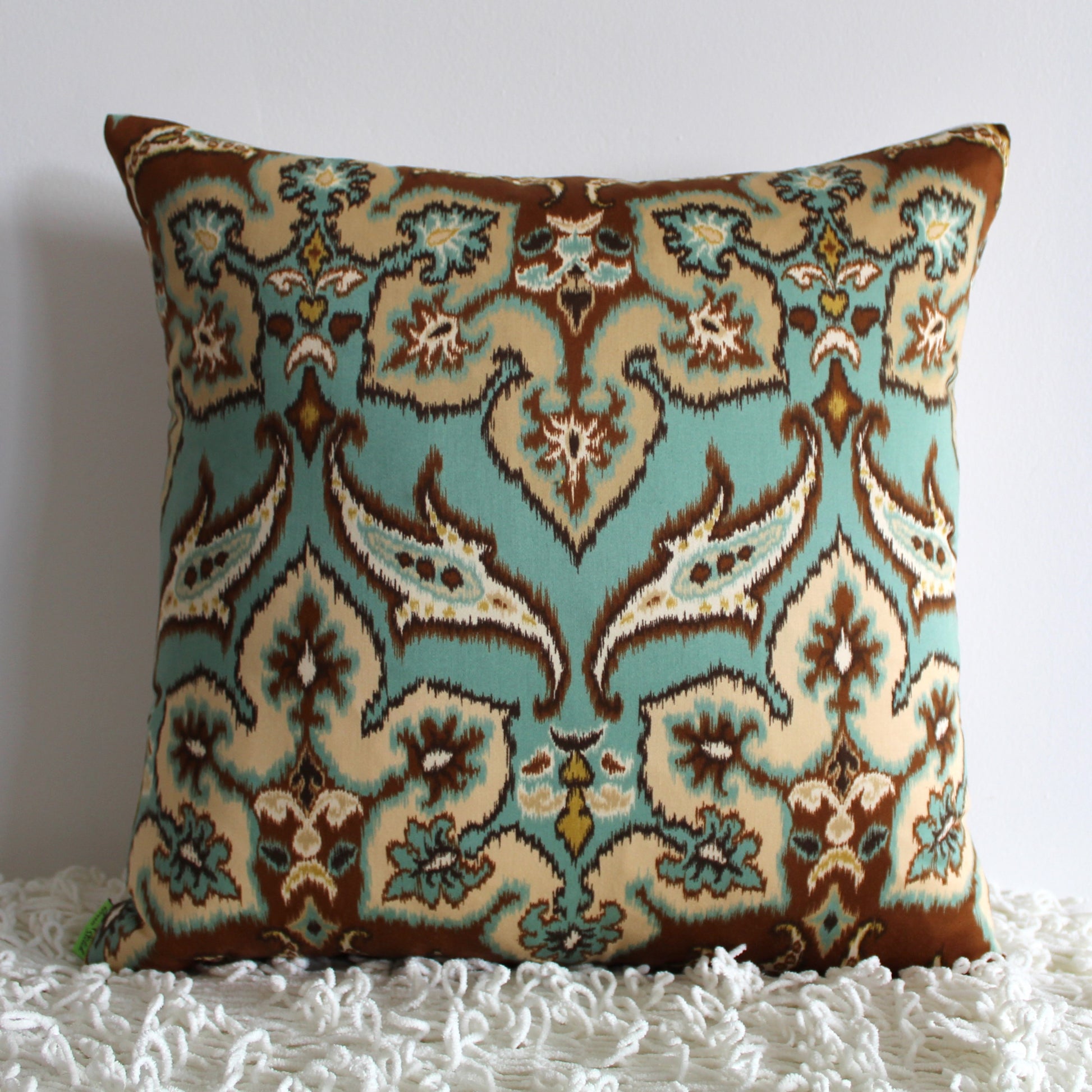 Make a bold statement with the Oasis Pattern Cushion. Featuring an intricate design in earthy browns, soft beige, and refreshing aqua tones, this cushion draws inspiration from exotic patterns and desert oases. Its rich detailing and striking colour palette bring both warmth and vibrancy, making it a standout piece in any room.