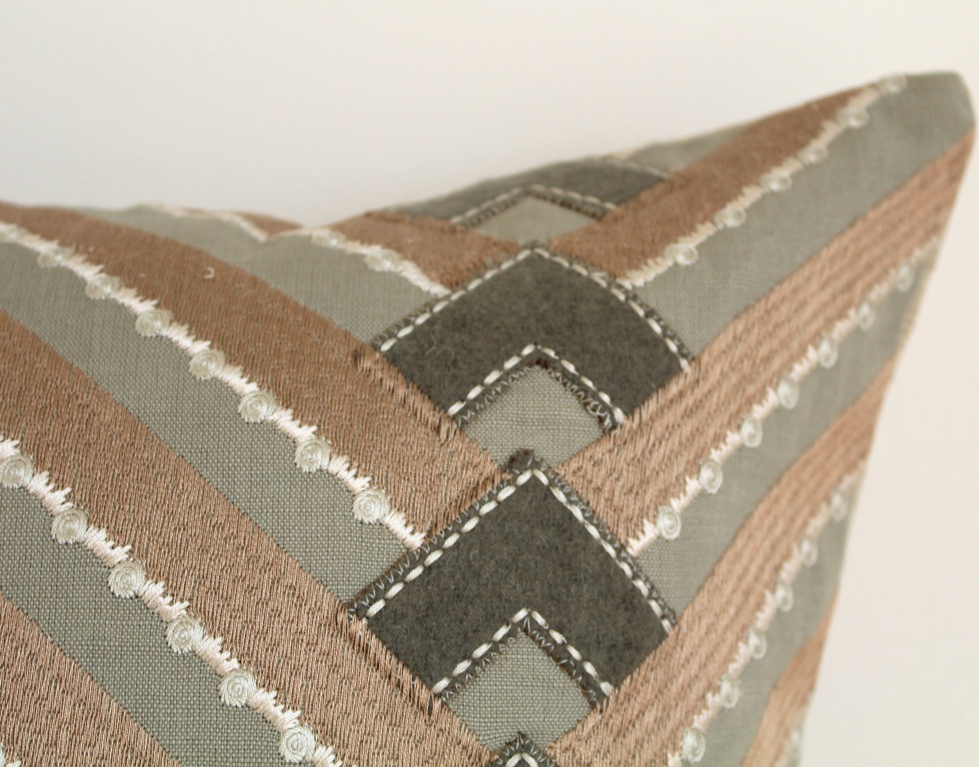 Ground your space with calm. This cushion’s earthy tones and textured chevron embroidery offer quiet elegance and a gentle reminder to pause and breathe.