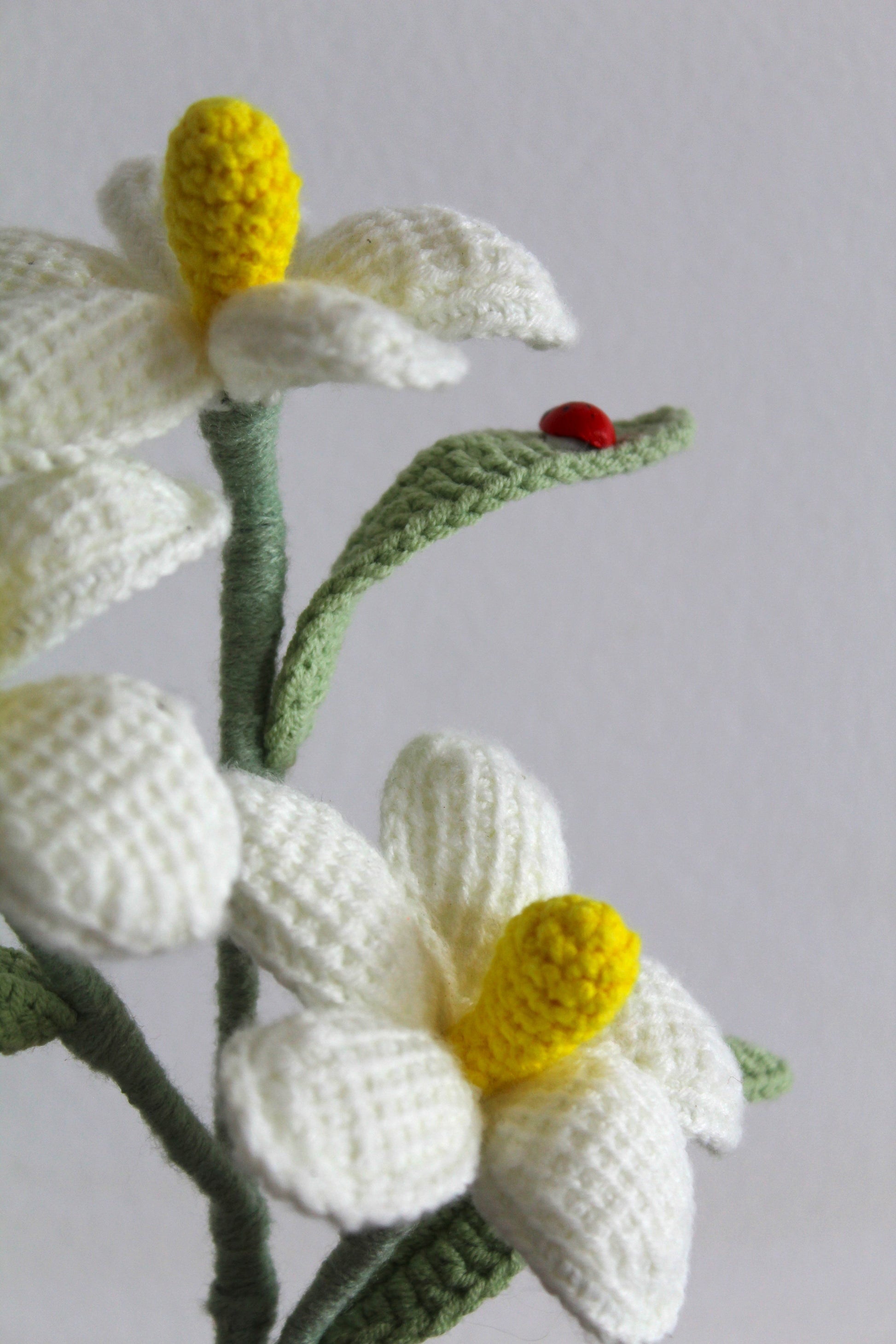 Bring a touch of sunshine indoors with our Sweet Daisy Bloom, a handcrafted wool crochet daisy designed to brighten any space with its soft, cheerful charm. Each petal is lovingly shaped, paired with a textured yellow center and delicate stitched leaves — all anchored in a sweet handmade pot complete with whimsical details like a tiny toadstool or ladybug.