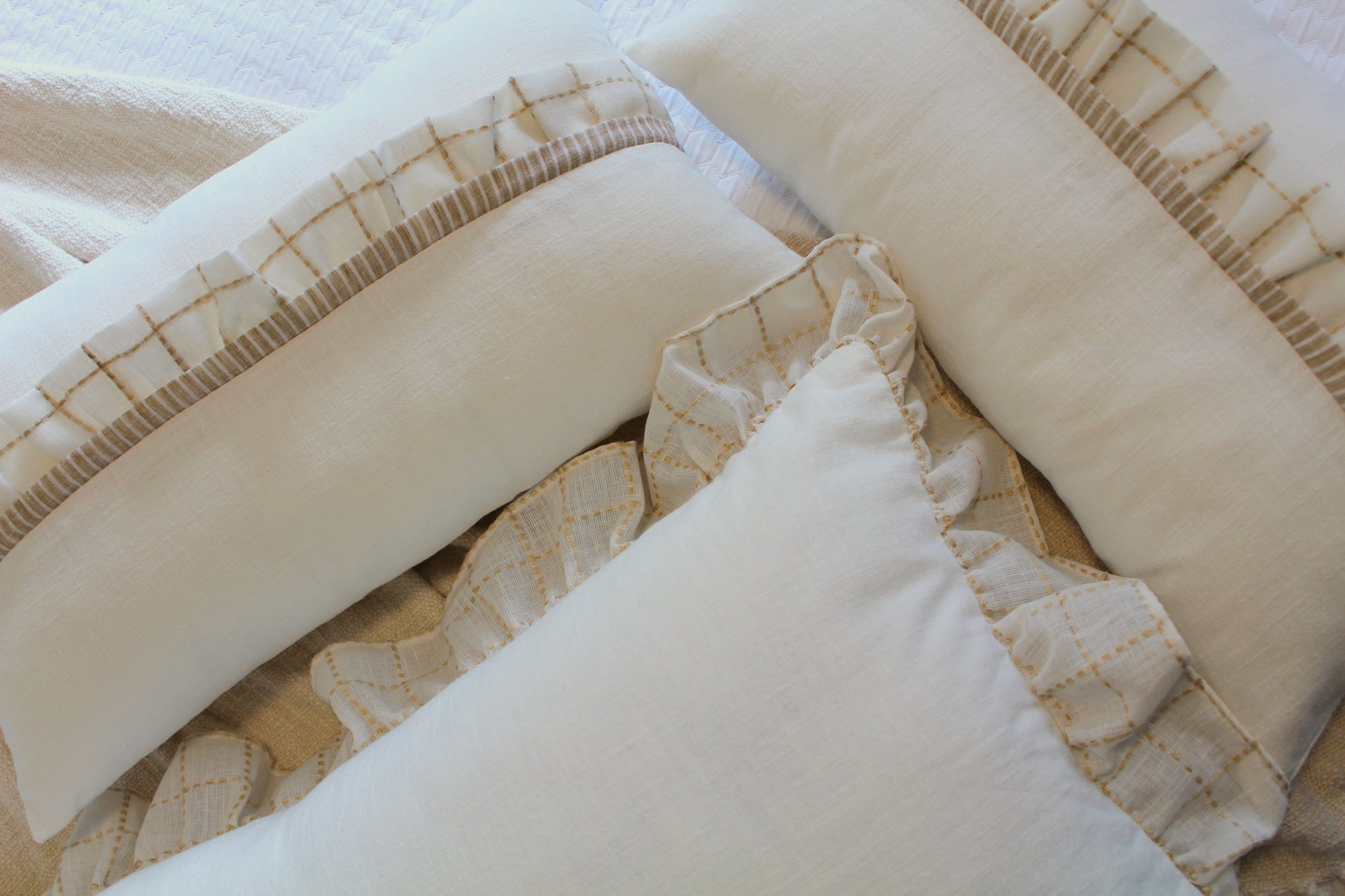 The Whisper Linen Pillowcase Set blends timeless simplicity with soft, handcrafted detail. Made from crisp white linen and finished with a delicate stitched ruffle, it brings a touch of lightness and charm to your bedding.